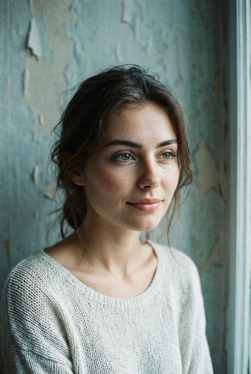 Kodachrome Cool-Toned Contemplative Portrait