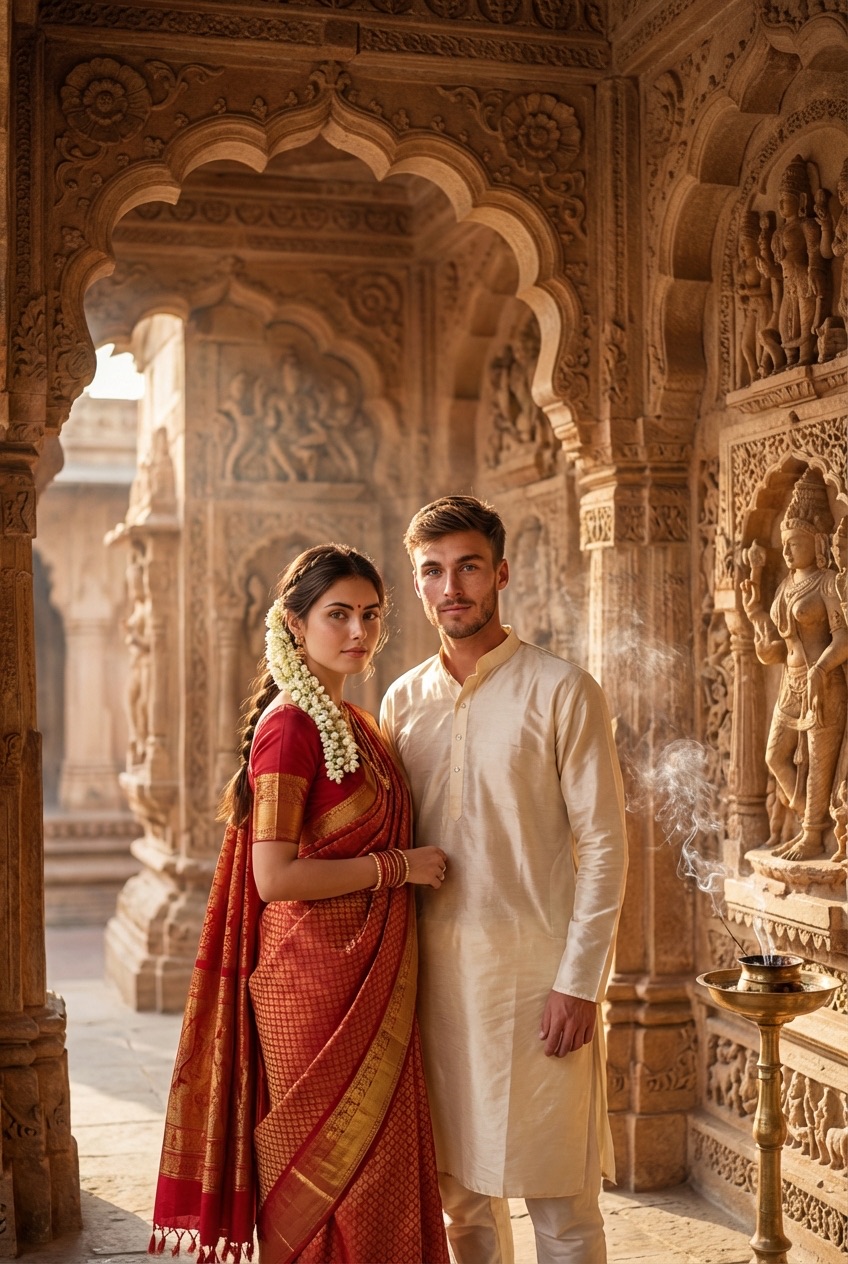 Цвет, поза, атмосфера и стилизация работают вместе, поэтому образ читается с первого взгляда.
